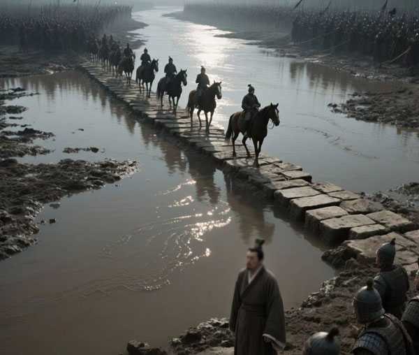 河对岸的追兵赶到时,只看见茫茫河水与深陷的淤泥,哪里还有石桥的影子?他们望着对岸远去的唐军背影,急得连连跺脚,却只能眼睁睁看着煮熟的“猎物”逃走。