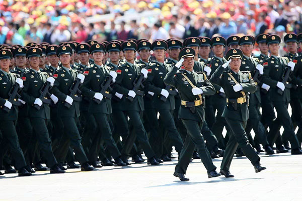 鸣钟,时惕厉,強权霸道,神社阴风。展利刃寒光,劲旅新容。淬炼三军健武,风雷动,海陆长空。凝魂魄,阅兵惊世,万众仰英雄。