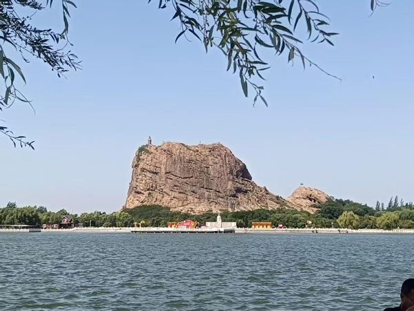 熊岳城东耸翠峦,孤峰兀立水云间。