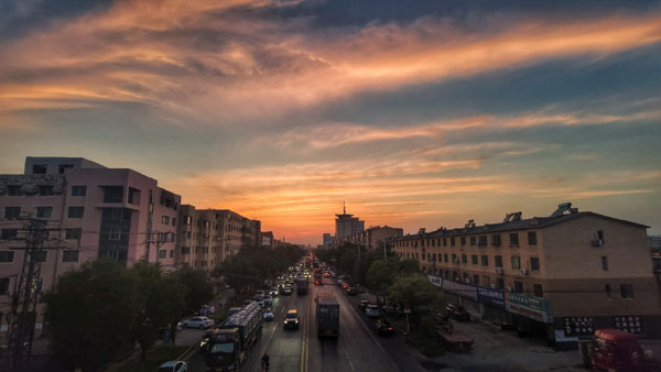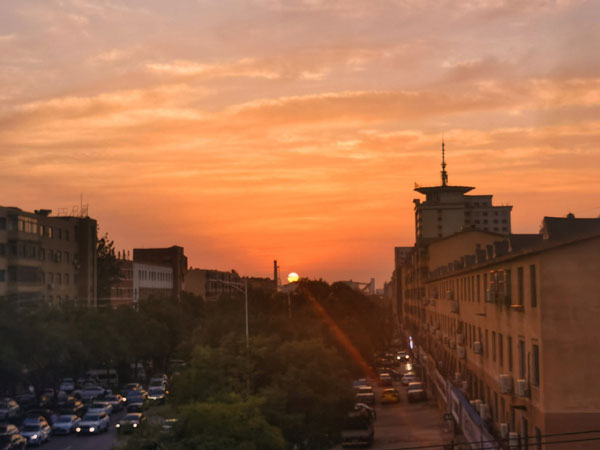 金秋时节,晚霞总是不经意间就出现了。而且千变万化,每次出现的形状、色彩都不一样,总给人以意想不到的惊喜。记得小时候,大人指着天上的晚霞告诉说:那叫“火烧云”。“早霞不出门,晚霞千里行”。是说,今天晚上火烧云,明天是好天气。于是,我天天晚上盼着火烧云,为的是明天好出去玩。由此,我就有个爱看火烧云的习惯。一直到现在,我爱看火烧云,爱拍照火烧云。下面是我9月11日晚拍摄的晚霞照片和作的一首词。