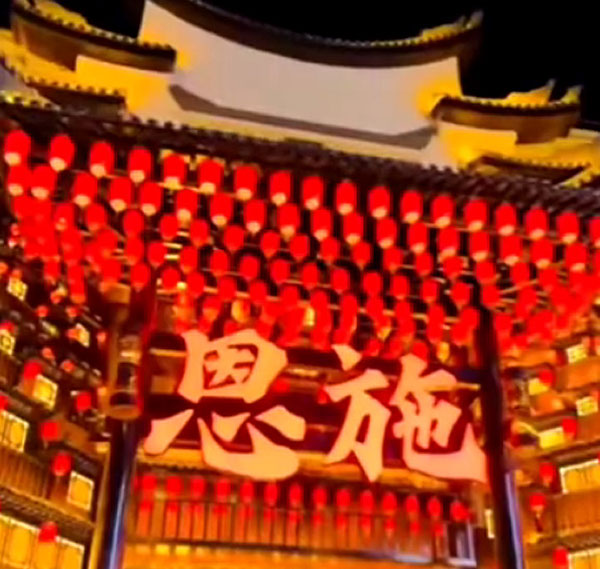真是恩施在眼前,山路在天边啊,但不管山路多么难行,路途多么遥远,我们坚信人定胜天,五个多小时后,直到连绵起伏,层峦叠嶂的鄂西群山突然退让,恩施如一颗灵秀的明珠,静静地躺在武陵山的臂弯里。四面环抱的峰峦为它筑起天然的城墙,而城中已是华灯初上。放下行囊,我们直奔恩施城中最具特色的土家族古城女儿城。