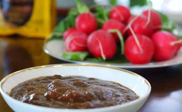 “圆菽焖捂酿鲜香,酱色深红入齿芳。千口陶缸千种味,蜚声万里客八方。”