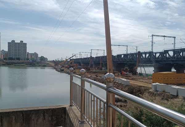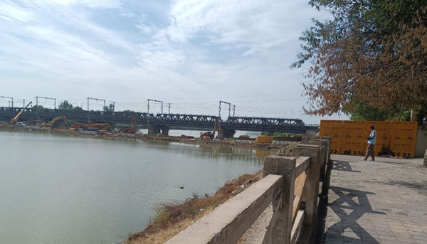 注:盖州过境大清河铁路桥1903年建成通车,至今已逾122年。因历久难修,无法适应当今社会发展之需要,经国家决策批准,于桥东约15米处增建一座新桥,现正施工中。