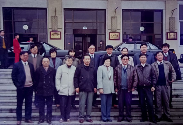 1993年时任国家计划委员会副主任郝建秀来营口检查工作,与市领导在营口宾馆门前合影。(本人拍照)