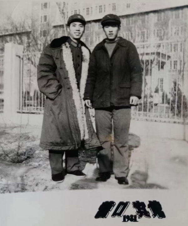 这是1981年我从部队回家探亲,和好朋友在营口宾馆门前拍照留念。