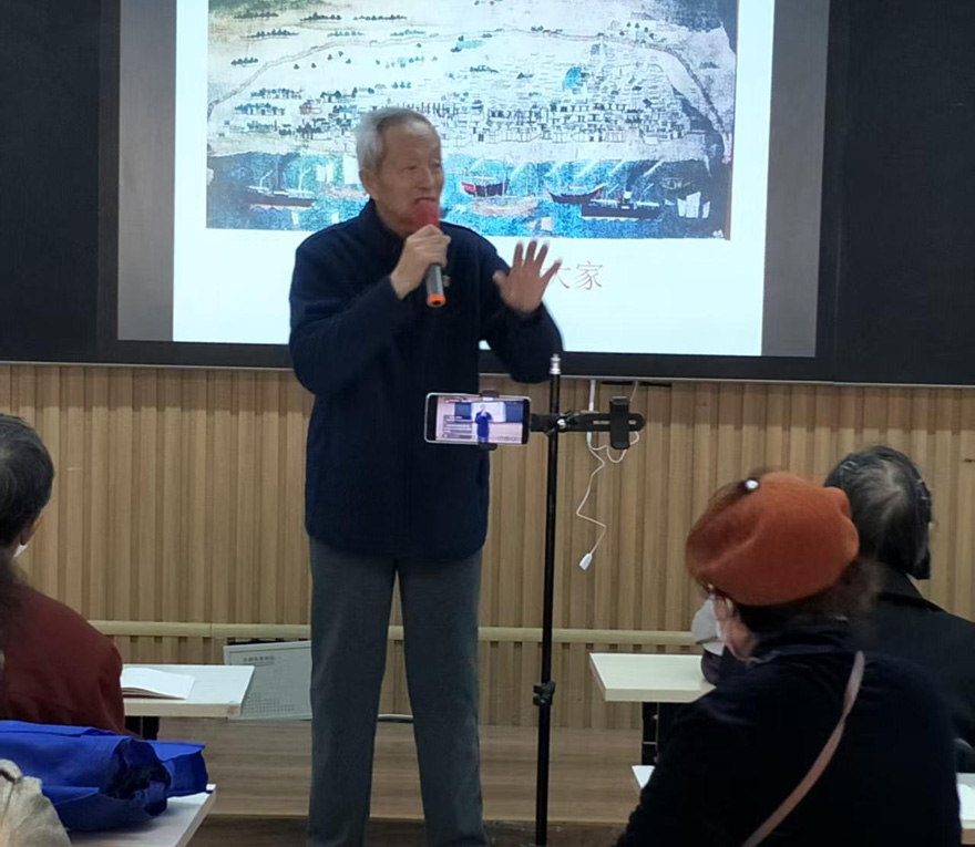在授课中,原老师把长期积累的文学知识储备和他的板书绘画等有机结合在一起,使每节课都内容丰富,讲解清晰,把格律诗的平仄、押韵、对仗和情感融为一体,用他独有的口音传送给同学们,引发老年人对古诗词的热爱之情,在老年人的心中播种优秀传统文化的种子。