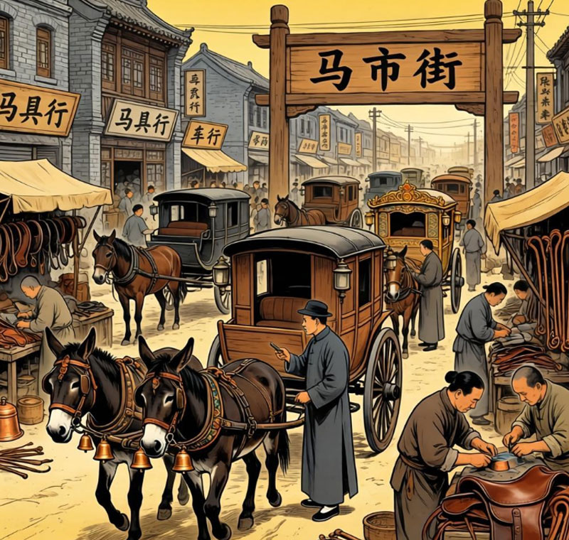 每逢集日,天刚蒙蒙亮,四乡八里的牲口贩子就赶着骡马上路了。更有远道的来客驻扎这里。盖州的骡子矮壮结实,田庄台的马儿腿脚利索,大石桥的马儿叫声能传二里地。买家卖家们南从通惠门,东从绥定门纷纷而入。买家们袖着手,围着牲口转圈儿,看牙口、摸骨架、拍脊背。成交时,两人袖口对着袖口,手指在里头捏来捏去,脸上却不动声色——这是老辈传下来的“摸码子”,旁人看不懂的哑谜。若是买卖成了,卖主会拍一下马屁股,说声“跟新主人家好好干”,买家则从怀里摸出几张票子,往卖主手里一放,旁边看热闹的人里,准有谁扯开嗓子喊一句:“这马,值了!”