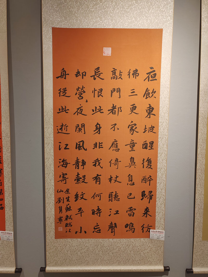 在全省一万多件作品中,刘隽宁的楷书作品脱颖而出,一举夺魁,金榜题名,荣获特金奖,可喜可贺。