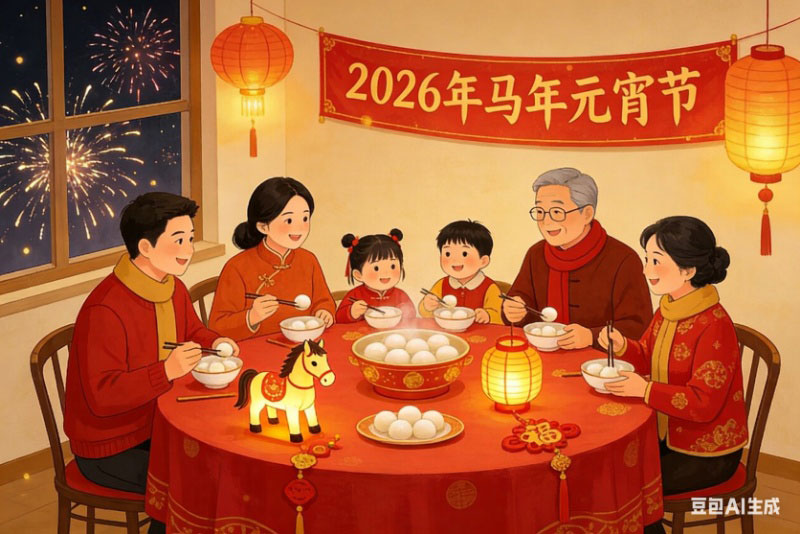 家家户户红灯挂,滚滚汤圆含笑漂。