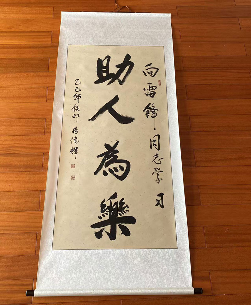 榜样雷锋,六十载,花开花落。无私献,奉公克己,英雄魂魄。几次列车扶老幼,几番山路携残弱。