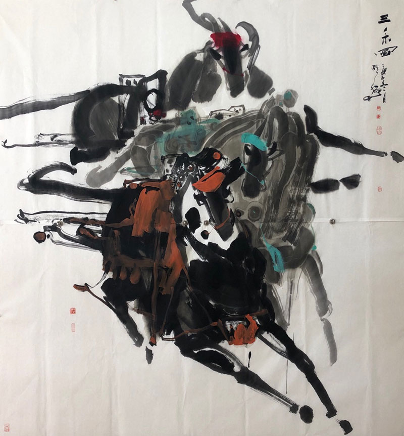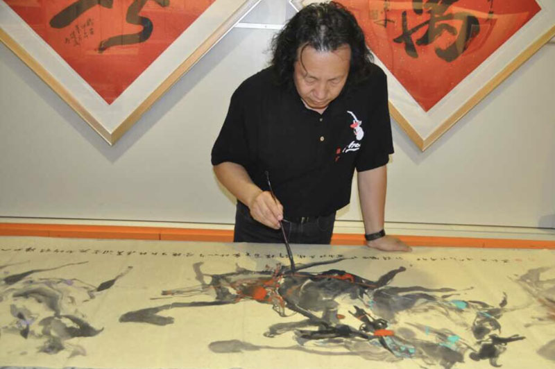2013年九月,应邀在新加坡滨海花园举办《总统挑战》慈善基金之《马上戚弘》画展