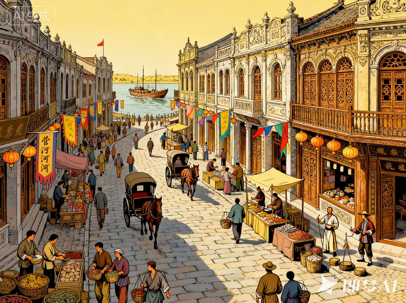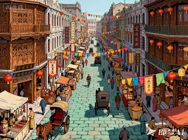 营口之窗·图文视界 再现营口西大街(AI绘画) 陈征