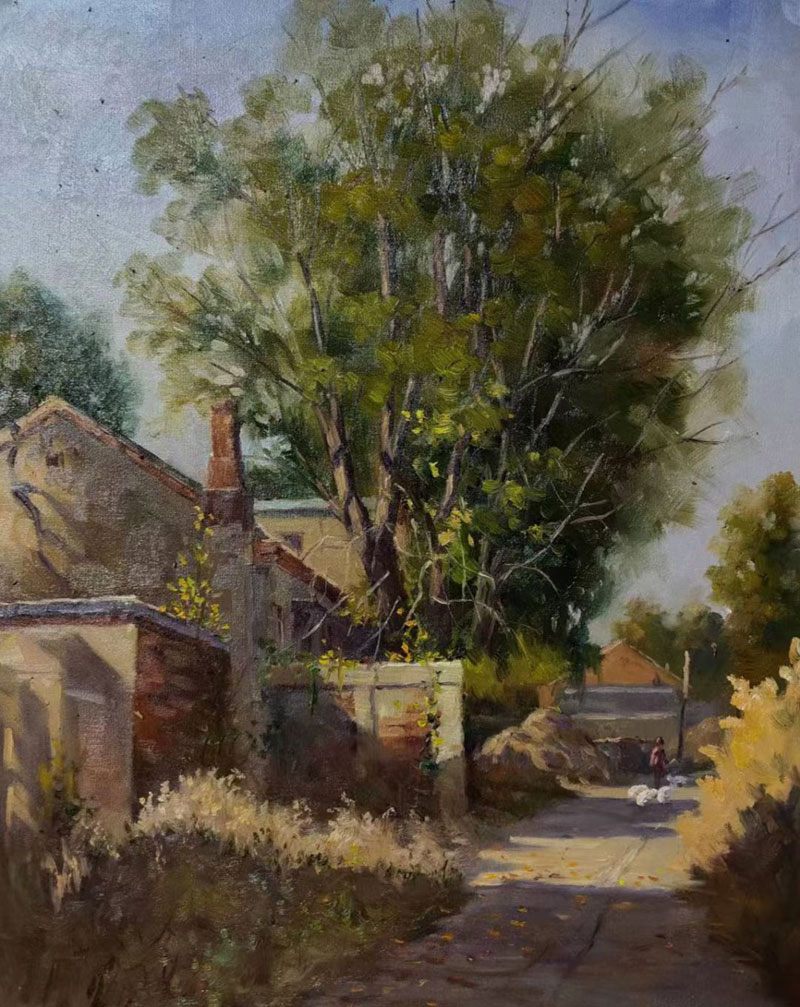 油画《河北的老房子》