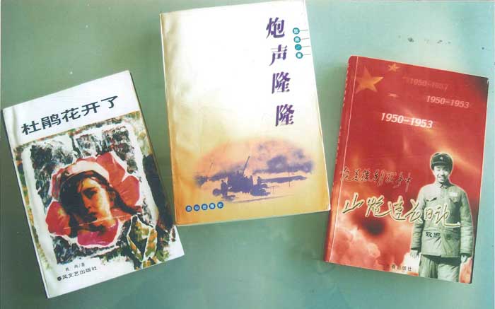 黄云腾离休后写的三本书;《杜鹃花开了》《炮声隆隆》《山炮连长日记》,弘扬抗美援朝精神。