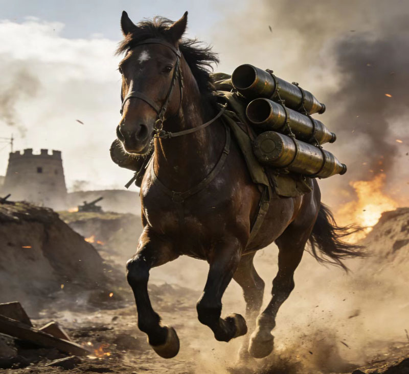 饲养员正给一匹棕红色的军马刷毛,刷子划过皮毛,发出沙沙的轻响,那“二等功”三个字在棕色的皮毛上愈发清晰。我踮着脚尖凑过去,满眼好奇地追问:“叔叔,马怎么还会立军功呀?”饲养员放下刷子,笑着拍了拍马脖子,这匹马温顺地甩了甩尾巴,像是在附和。那个饲养员蹲下身笑着说:“这匹马,可是辽沈战役里响当当的功臣。那时候前线炮火连天,炮弹补给跟不上,就是它,驮着沉甸甸的弹药箱往前沿阵地冲。在枪林弹雨里,它像是长了心眼儿,炮弹炸在身边,就机灵地躲到土坡后;遇到敌人的机枪扫射,就四蹄腾空狂奔,愣是没被伤到分毫”。饲养员的声音带着几分豪迈,我听得入了迷,眼睛一眨不眨地盯着那匹军马。“到了阵地前,它更神,前腿猛地一抬,背上的弹药箱就‘咚’地一声,稳稳落在战士们手边,不远不近,伸手就能拿到。就这么来来回回跑了四趟,一趟比一趟凶险,可它愣是没出半点差错,把一箱箱救命的炮弹送了上去。这二等功,是它拿命换来的!”饲养员的话音刚落,那匹棕马忽然打了个响鼻,昂首甩了甩鬃毛,仿佛在回味那段烽火岁月。我伸手轻轻抚摸它的皮毛,粗糙的触感里,似有滚烫的温度,那是战火淬炼出的忠诚与勇敢。