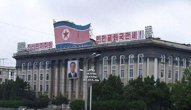 到了朝鲜新义州车站,细雨初停。回望祖国的江城丹东,碧水环绕,青山如黛,现代化的群楼错落有致,显现着改革开放带来的日新月异的变化。而从新义州车站广场了望新义州市,却没有一栋现代化的建筑。不高的楼房,大都是砖混结构,外立面大多涂有水泥和灰浆。广场凸凹不平,路面年久失修。人们几乎都穿着黑色和铁锈色的服装。也许是边防城市,荷枪的军人显得有点多。站前看不见店铺,只有两三个用布遮荫的摊贩,卖着冰棍之类的小食品。建筑物的顶上绘有红地白字的,《21世纪的太阳金正日将军万岁》等标语。