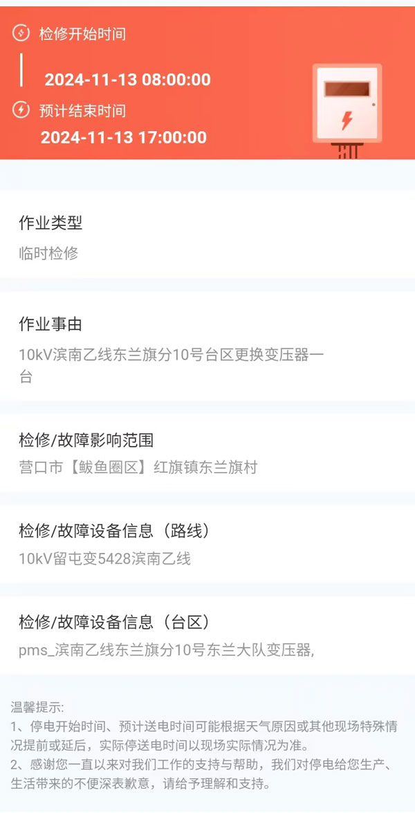 上一篇:2024年10月16日 鲅鱼圈区电网检修公告 下一篇:2024年11月14日 鲅鱼圈区电网检修公告