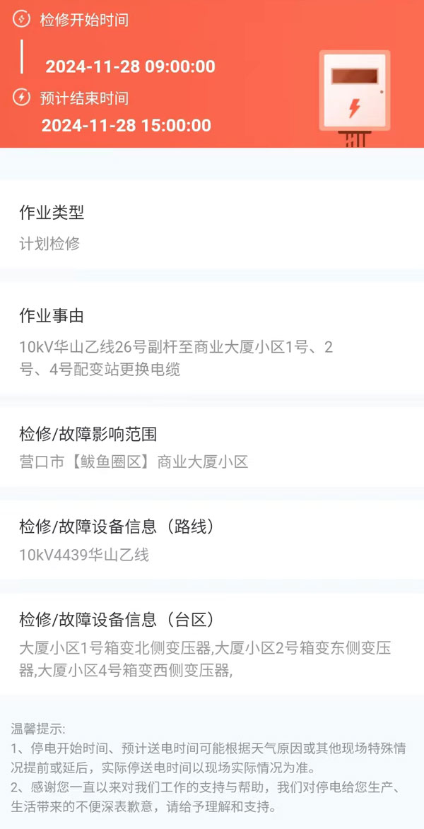 上一篇:2024年11月27日 鲅鱼圈区电网检修公告 下一篇:2024年12月03日 鲅鱼圈区电网检修公告