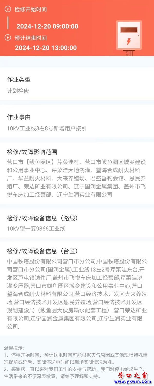 上一篇:2024年12月12日 鲅鱼圈区电网检修公告 下一篇:2025年01月09日 鲅鱼圈区电网检修公告
