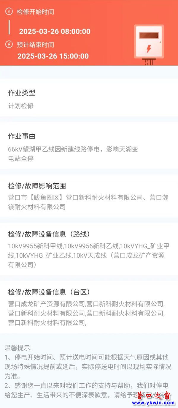上一篇:2025年03月19日 鲅鱼圈区电网检修公告 下一篇:2025年03月27日 鲅鱼圈区电网检修公告