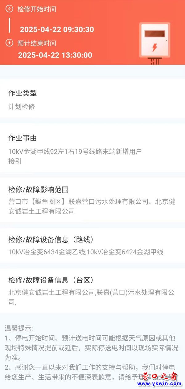 上一篇:2025年04月09日 鲅鱼圈区电网检修公告 下一篇:2025年04月23日 鲅鱼圈区电网检修公告