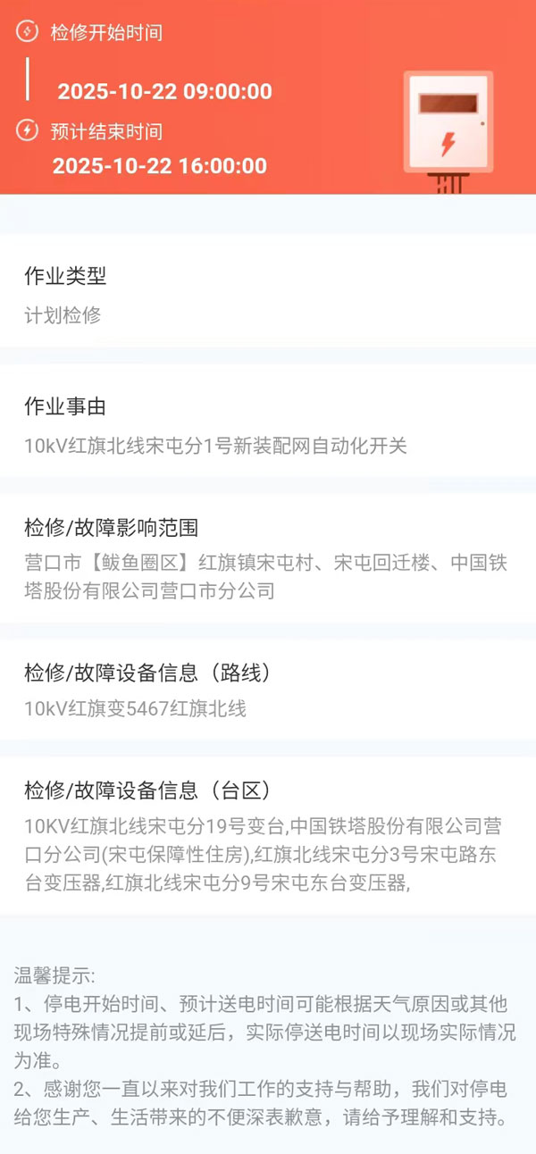 上一篇:2025年10月22日 鲅鱼圈区电网检修公告 下一篇:2025年10月24日 鲅鱼圈区电网检修公告