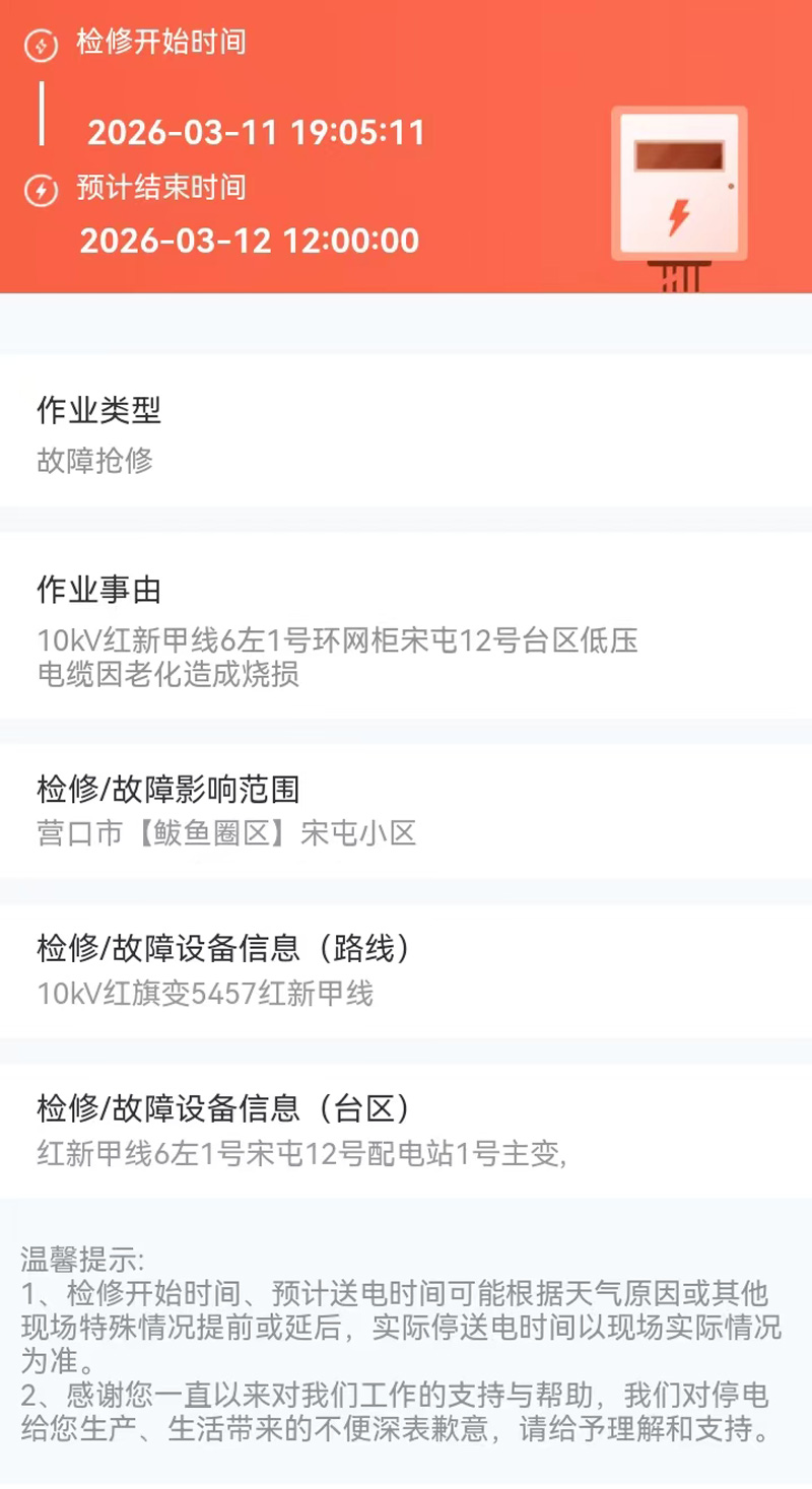 2026年03月12日 鲅鱼圈区电网检修公告 |