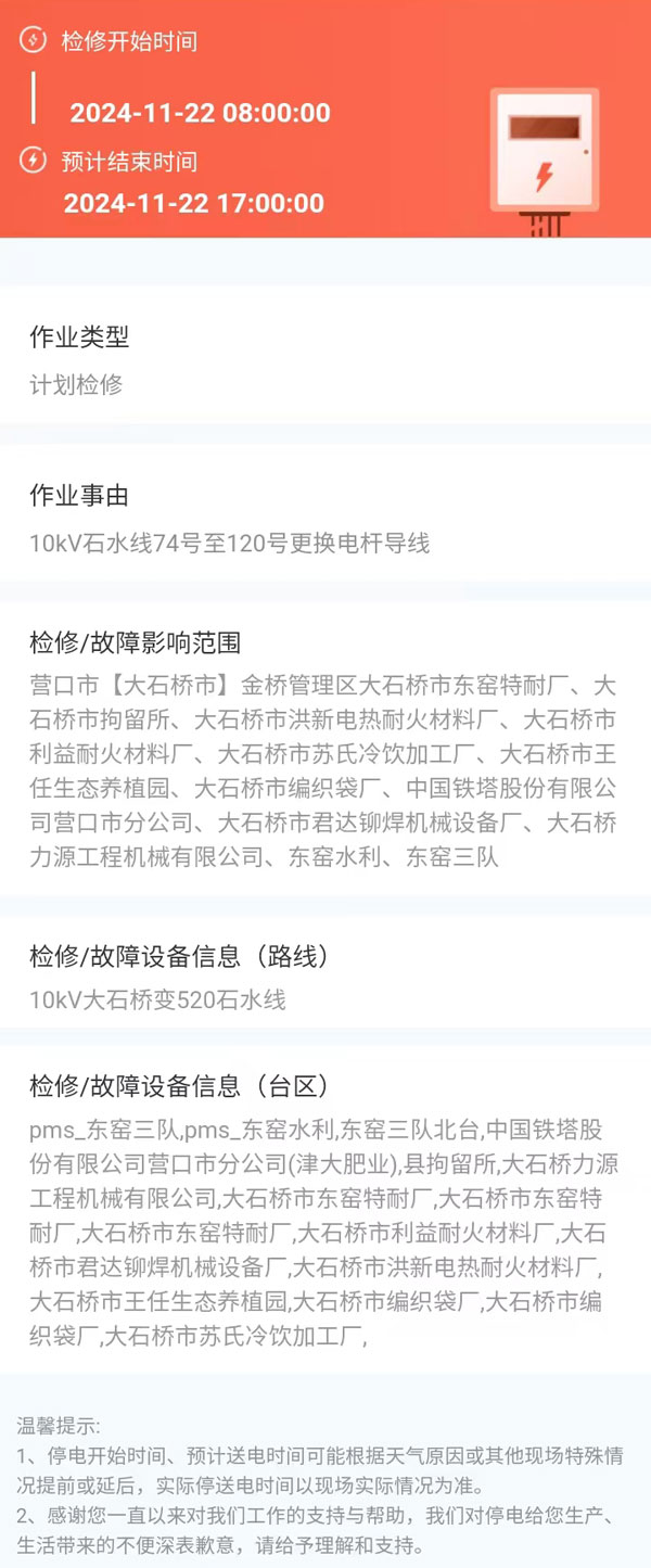 上一篇:2024年11月21日 大石桥市电网检修公告 下一篇:2024年11月26日 大石桥市电网检修公告