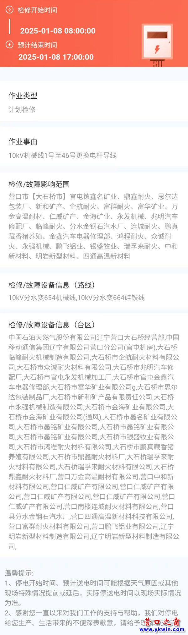 上一篇:2024年11月29日 大石桥市电网检修公告 下一篇:2025年03月17日 大石桥市电网检修公告