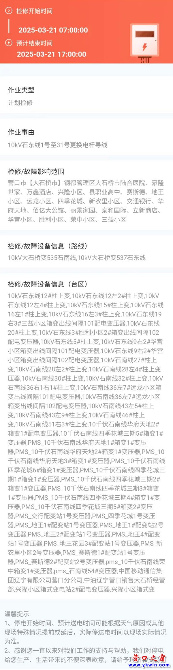 上一篇:2025年03月20日 大石桥市电网检修公告 下一篇:2025年03月21日 大石桥市电网检修公告