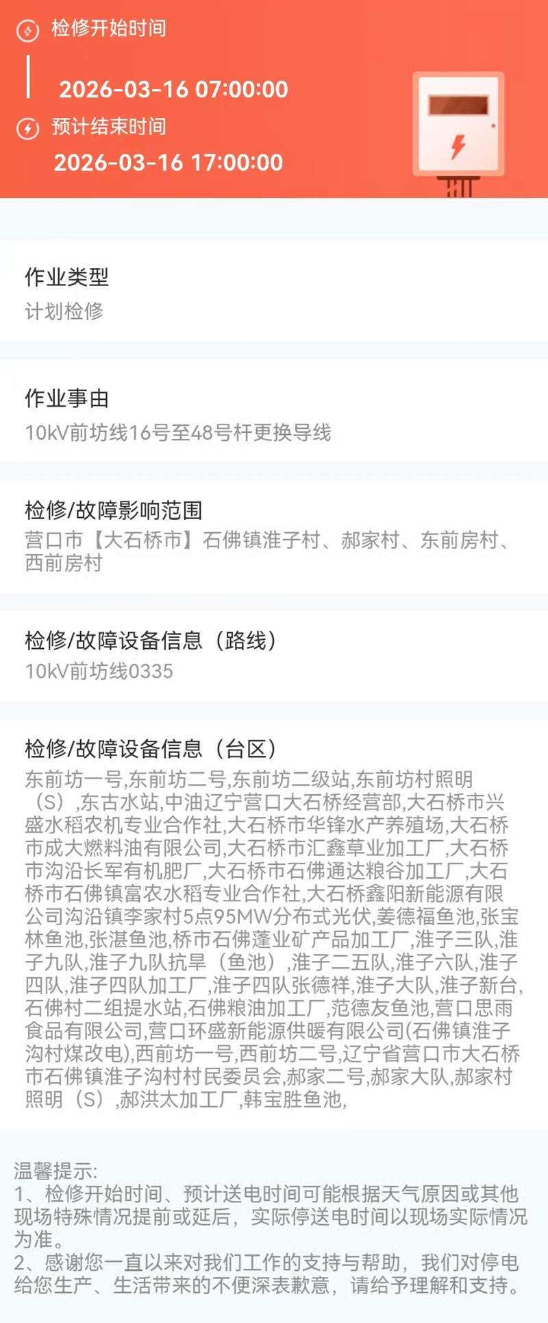 2026年03月16日 大石桥市电网检修公告 |