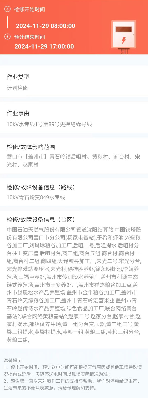 上一篇:2024年11月29日 盖州市电网检修公告 下一篇:2024年12月06日 盖州市电网检修公告
