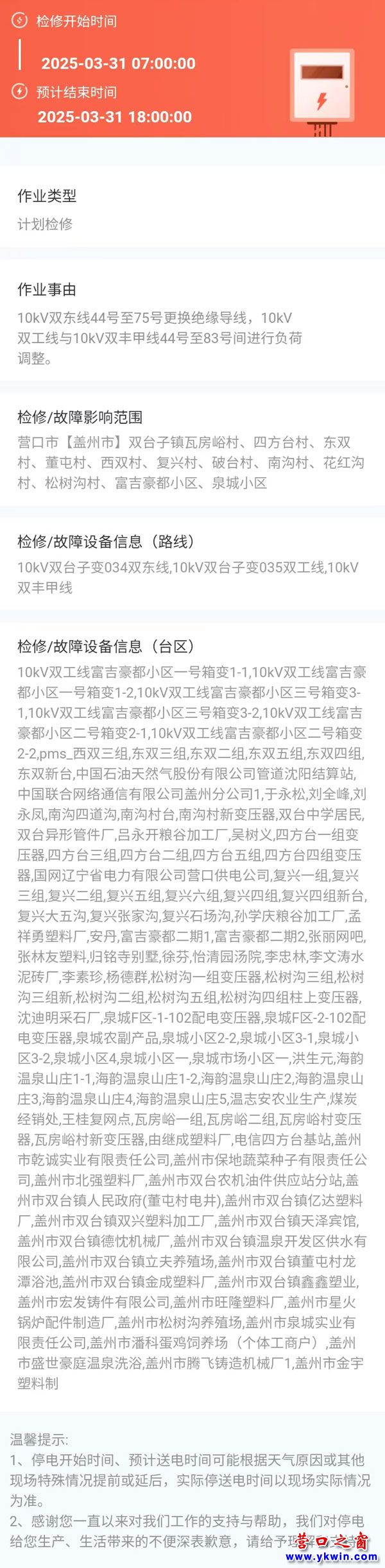 上一篇:2025年03月28日 盖州市电网检修公告 下一篇:2025年04月02日 盖州市电网检修公告