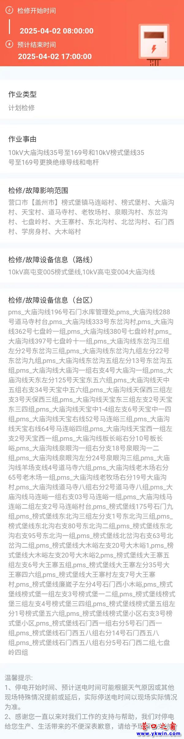 上一篇:2025年03月31日 盖州市电网检修公告 下一篇:2025年04月03日 盖州市电网检修公告