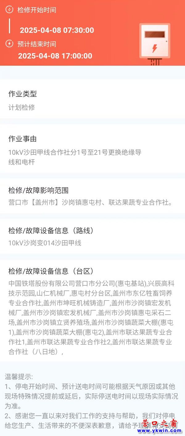 上一篇:2025年04月07日 盖州市电网检修公告 下一篇:2025年04月10日 盖州市电网检修公告