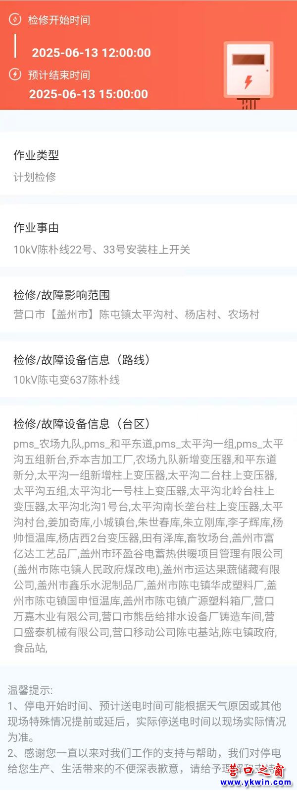 上一篇:2025年06月13日 盖州市电网检修公告 下一篇:2025年06月11日 盖州市电网检修公告
