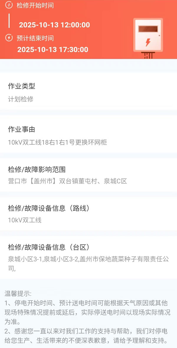 上一篇:2025年10月13日 盖州市电网检修公告 下一篇:2025年10月14日 盖州市电网检修公告