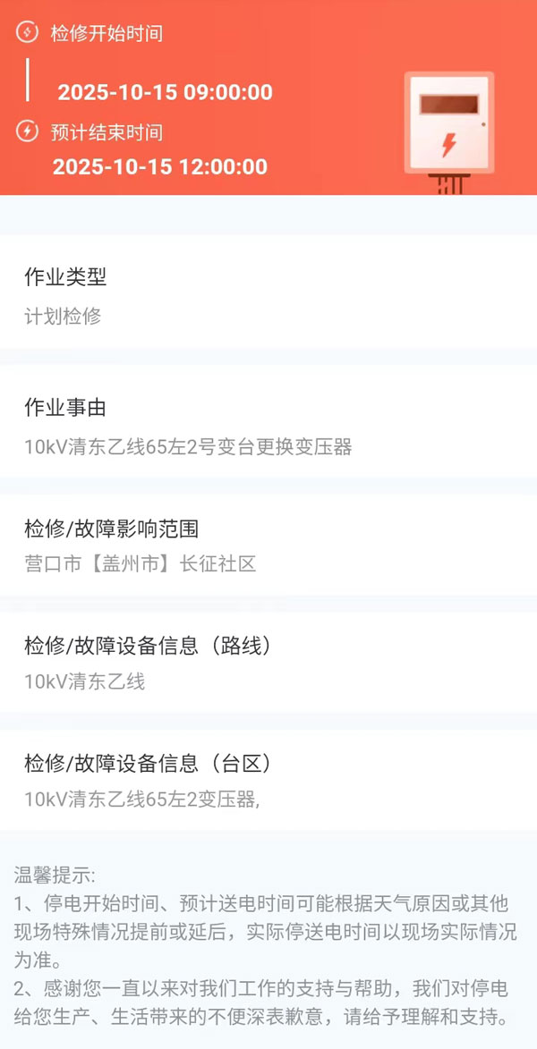上一篇:2025年10月14日 盖州市电网检修公告 下一篇:2025年10月16日 盖州市电网检修公告