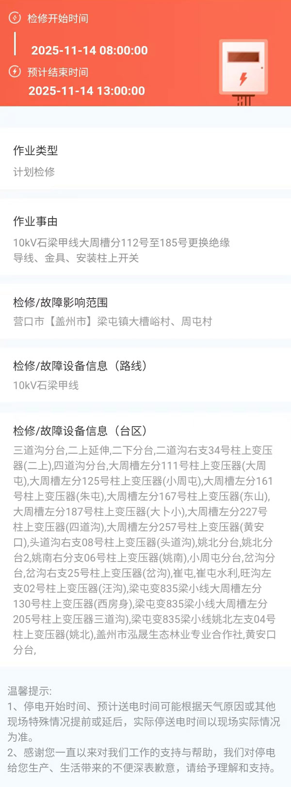 上一篇:2025年11月13日 盖州市电网检修公告 下一篇:2025年11月14日 盖州市电网检修公告