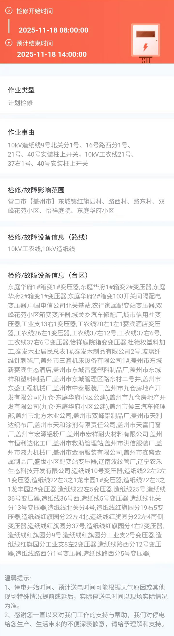 上一篇:2025年11月14日 盖州市电网检修公告 下一篇:2025年11月19日 盖州市电网检修公告