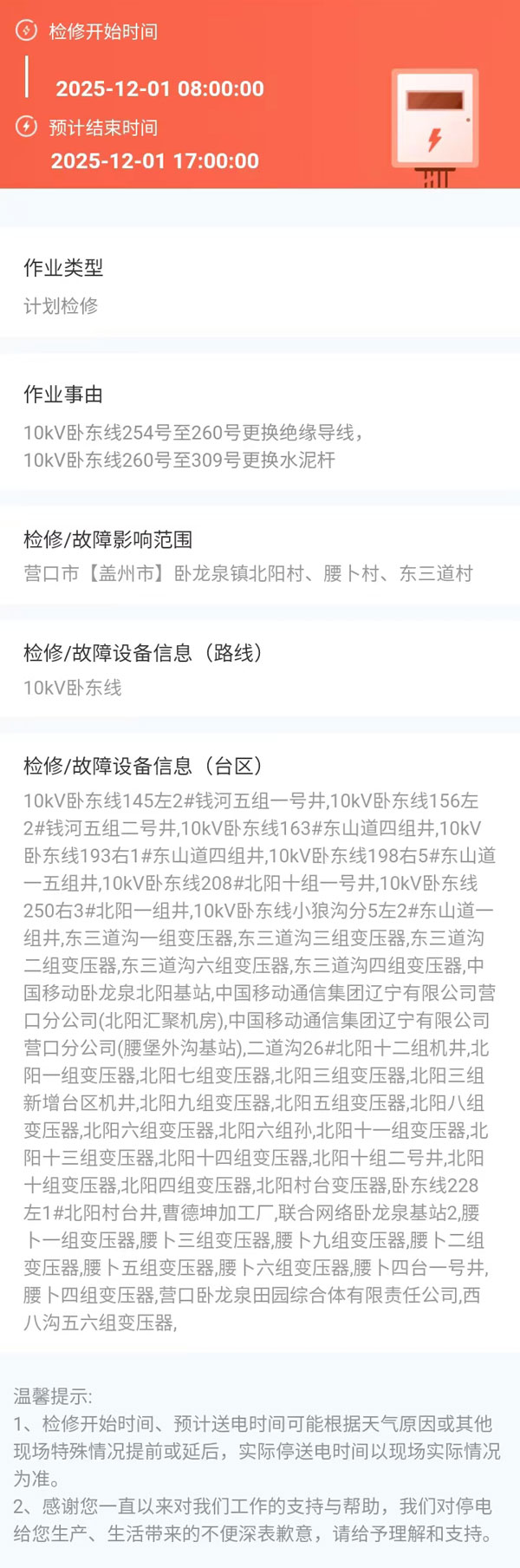 上一篇:2025年12月01日 盖州市电网检修公告 下一篇:2025年12月02日 盖州市电网检修公告