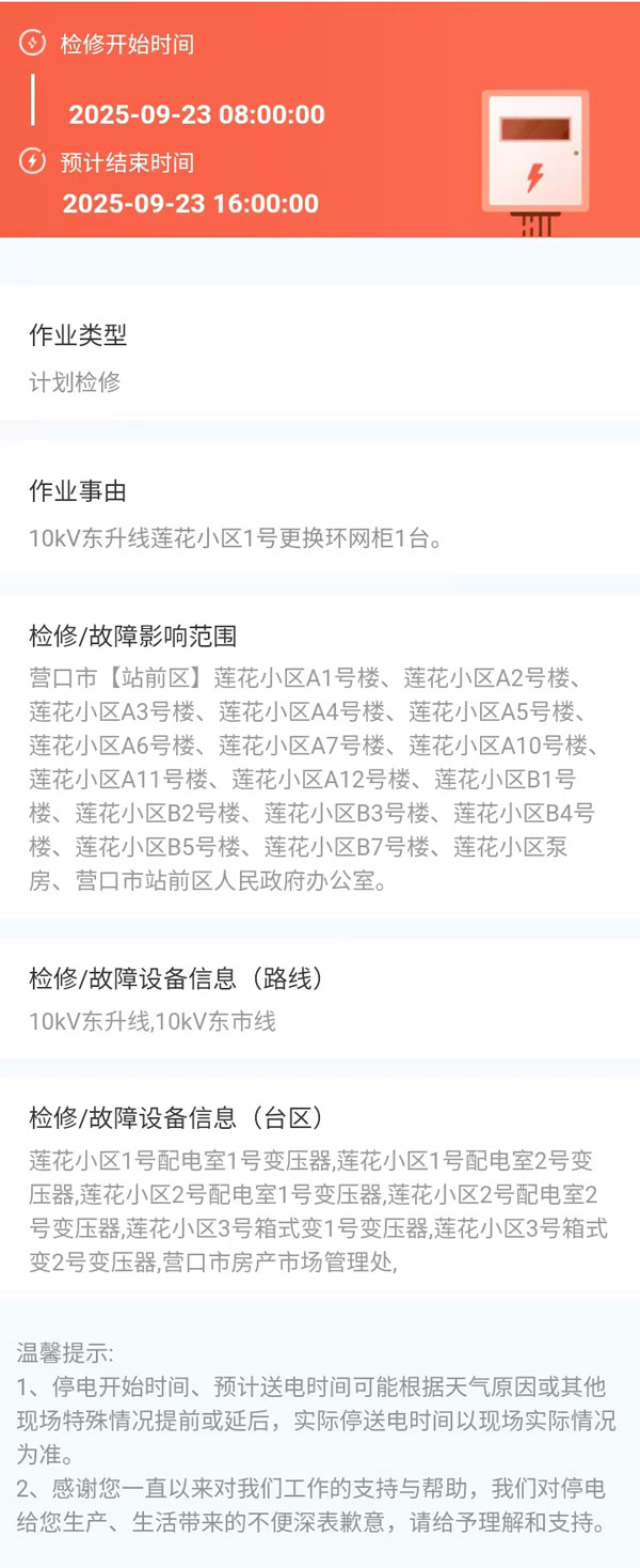 上一篇:2025年08月15日 站前区电网检修公告 下一篇:2025年09月25日 站前区电网检修公告