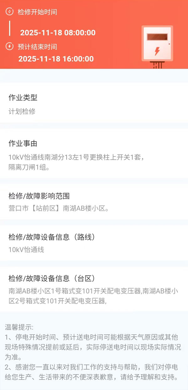 上一篇:2025年11月14日 站前区电网检修公告 下一篇:2025年11月18日 站前区电网检修公告