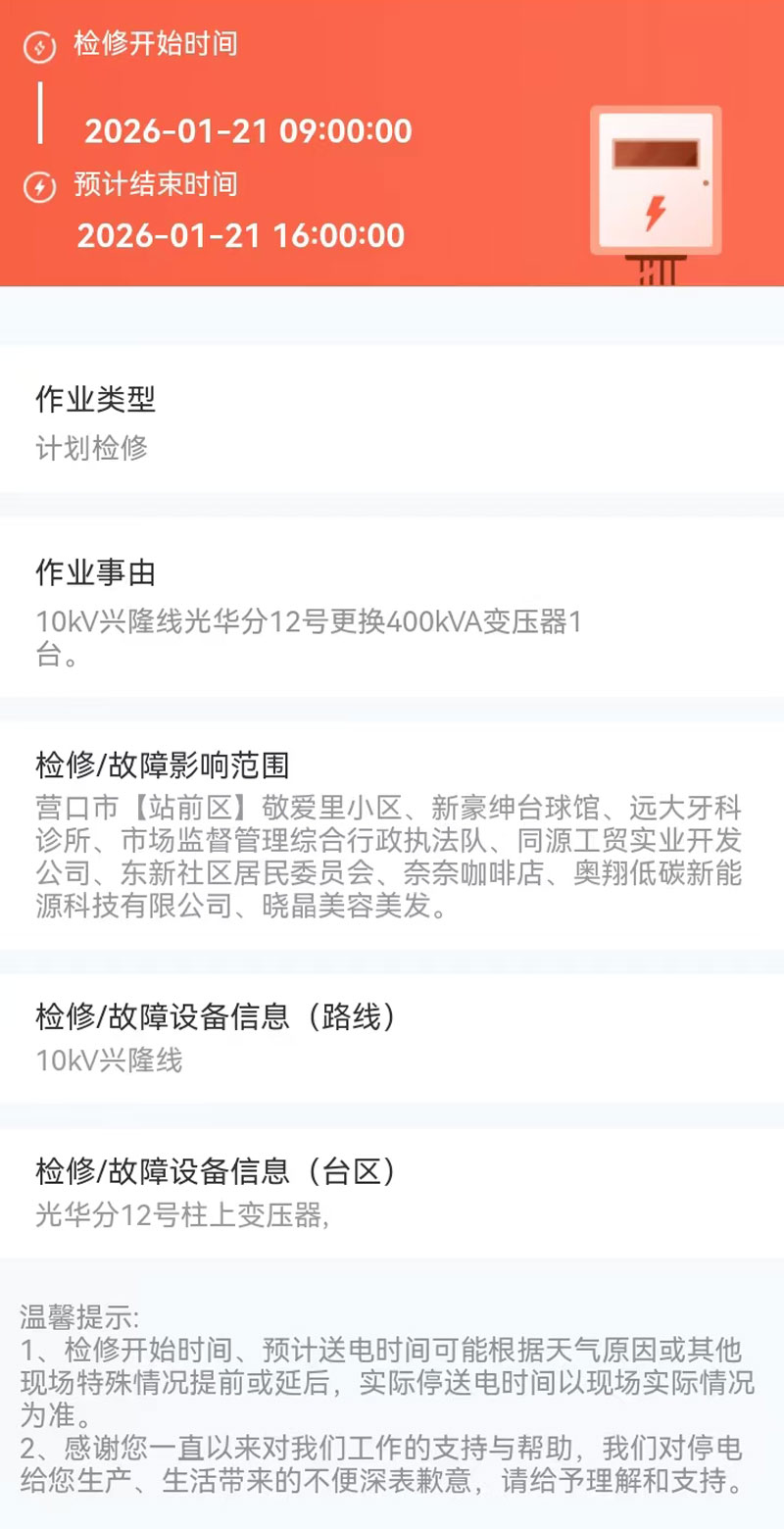 2026年01月21日 站前区电网检修公告