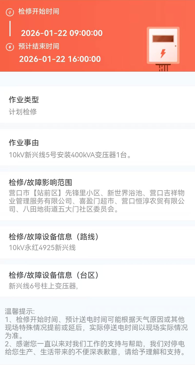 2026年01月22日 站前区电网检修公告