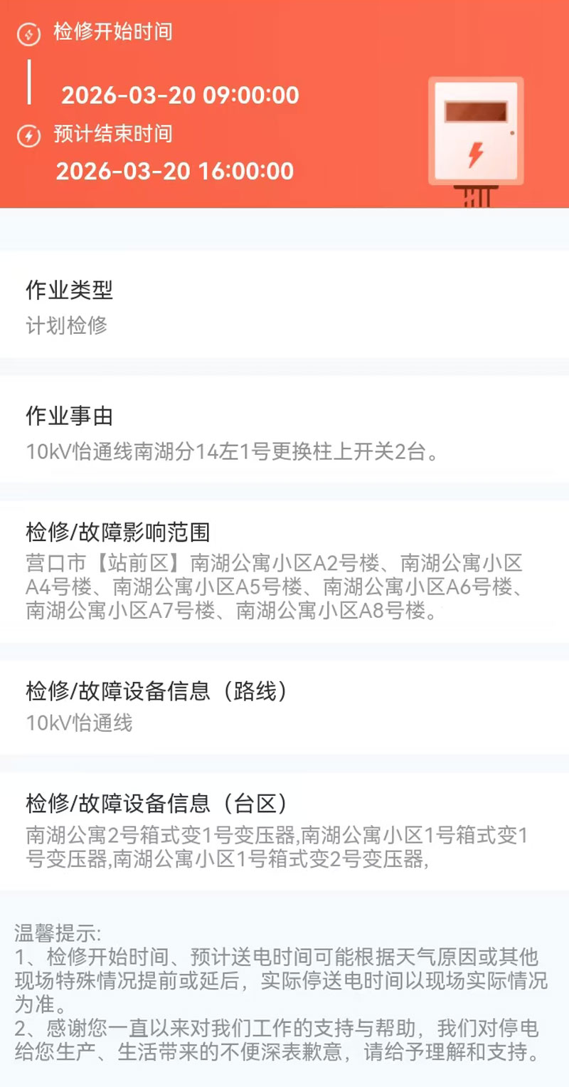2026年03月18日 站前区电网检修公告
