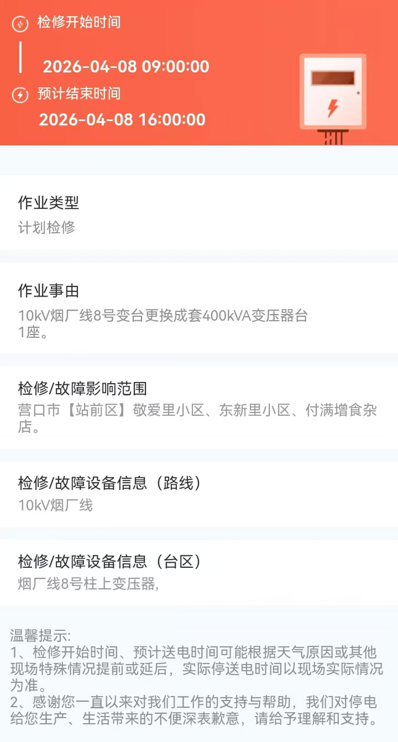 2026年04月08日 站前区电网检修公告