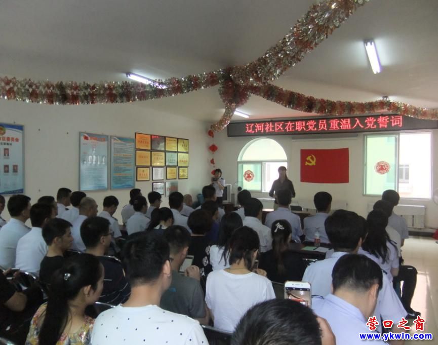 6月24日是省委确定“在职党员进社区”义务服务日。上午9时,辽河社区组织在职党员开展重温入党誓词活动,在职党员及社区党员60余人参加此次活动。