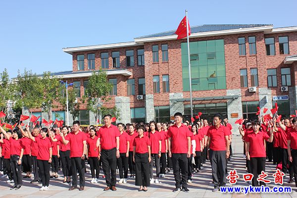 在升旗仪式后,大家组成国旗的方阵,手持祝福祖国的葵花图案,共同高呼“不忘初心,继续前进,团结奋进,振兴中华,祝福伟大祖国繁荣昌盛,国泰民安”的口号,把升旗仪式的活动现场推向高潮。