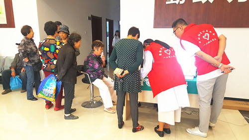 2017年9月25日上午9点,滨海办事处鑫海社区与何氏眼科联合在社区一楼服务大厅开展我爱西市“喜迎十九大,公益为大家”服务活动,为辖区内的居民免费检查视力、筛查和咨询眼科疾病。